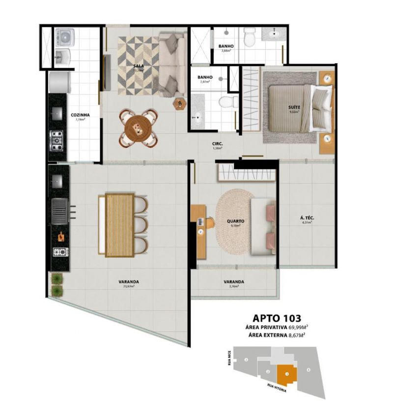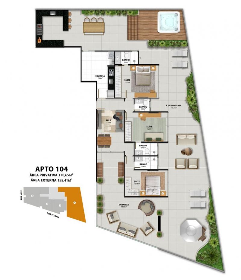 Excelente localização com facilidade de acesso em diversos estabelecimentos locais da cidade.