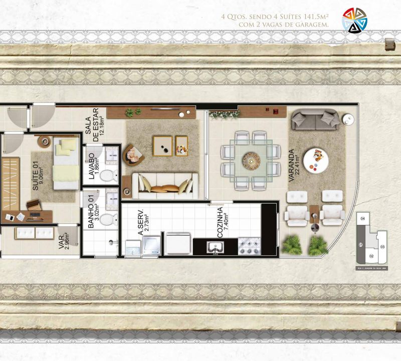 Lançamento no Centro, com 04,03 e 02 quartos, 02 vagas de garagem. Area de lazer no predio com piscina, brinquedoteca, home office, sala de jogos, lavanderia, fitness, salao de festas, launge, espaço gourmet.