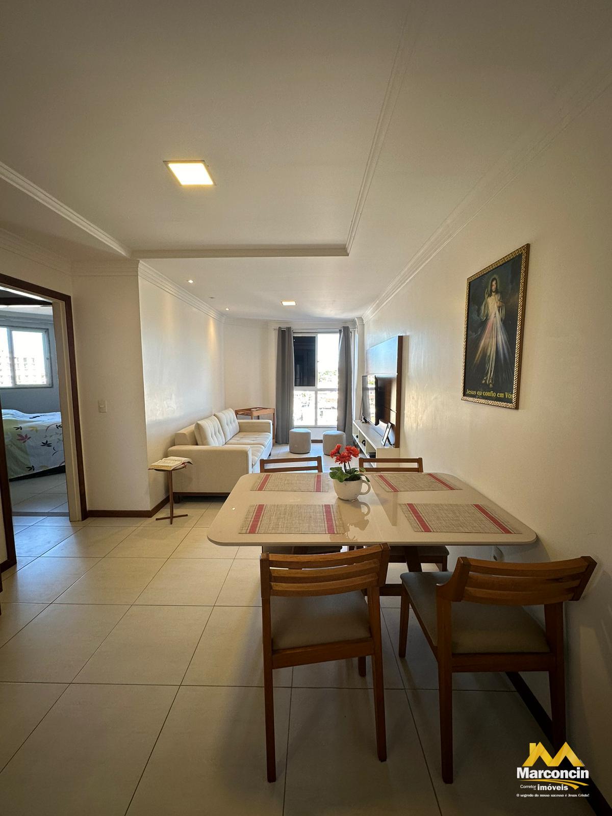 Apartamento localizado no Centro, mobiliado, possuindo 02 quartos (sendo 01 suíte), 02 banheiros (sendo 01 social), sala de estar e jantar, cozinha, área de serviço, 01 vaga de garagem.