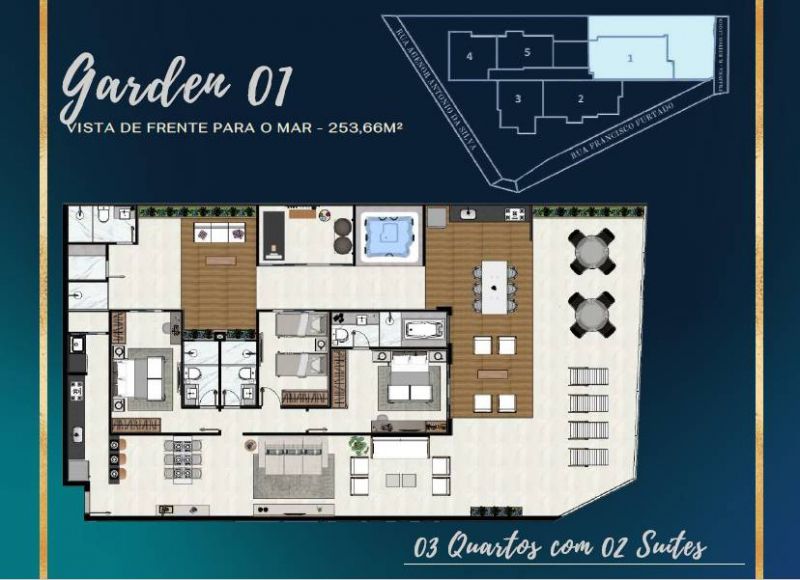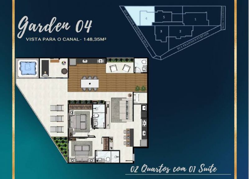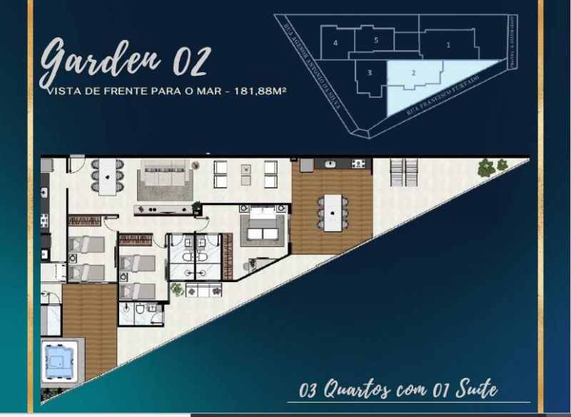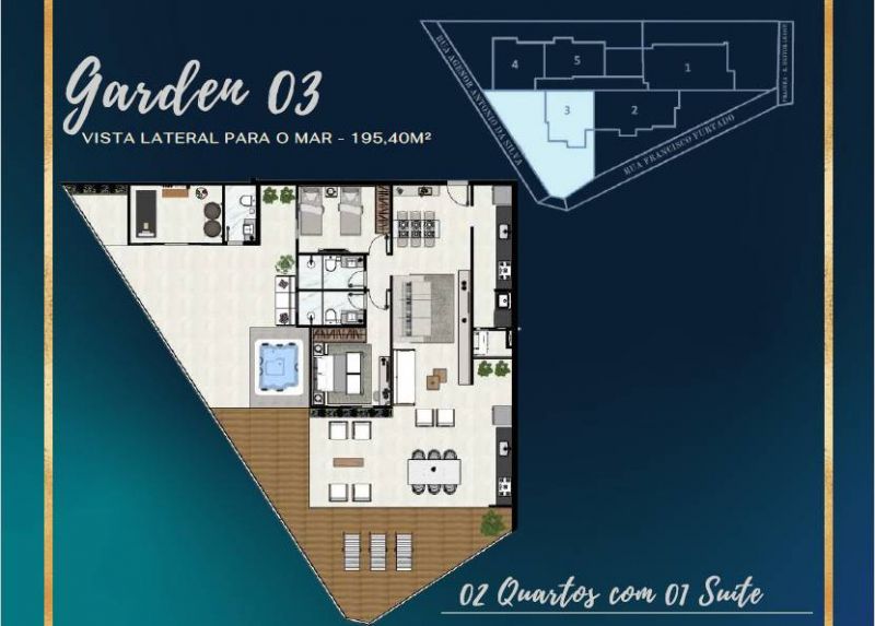 Lançamento na Prainha de Muquiçaba com 02 e 03 quartos (01 suite), 02 ou 03 vagas de garagem, beira mar, 50 m da Praia do Morro, area de lazer completo na cobertura com piscina, deck, sauna, espaço coberto e descoberto, espaço kids, sala de jogos, cinemateca, estetica, espaço fitness, espaço gourmet, cozinha, salao de festas, coworking, studio de blog, adega e muito mais.