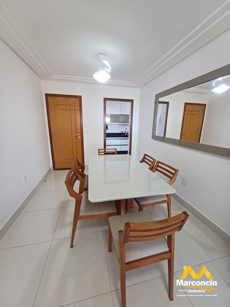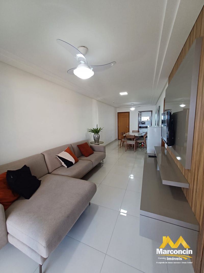 Apartamento localizado na Praia do Morro, possuindo 03 quartos (sendo 01 suíte), 02 banheiros, sala de estar e jantar, cozinha, área de serviço, 02 vagas de garagem, varanda, elevador, portaria, área de lazer no prédio com pergolado, sauna, solarium, playground, churrasqueira, área de uso comum.